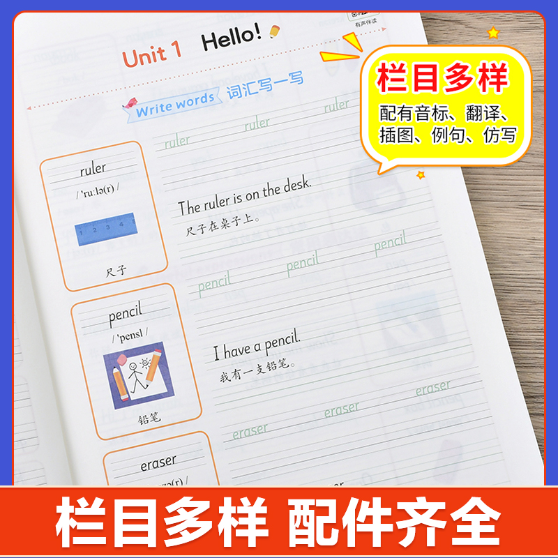 小学英语同步字帖三年级四年级五年级六年级上册下册人教版 英语练字帖手写字体衡水体英文字帖英语字母单词描红练字本教材同步