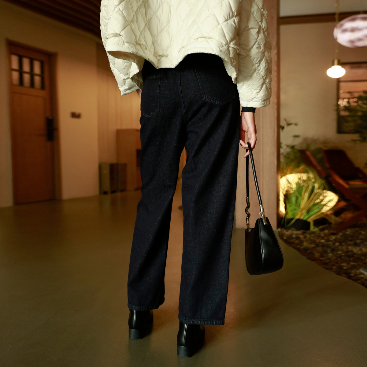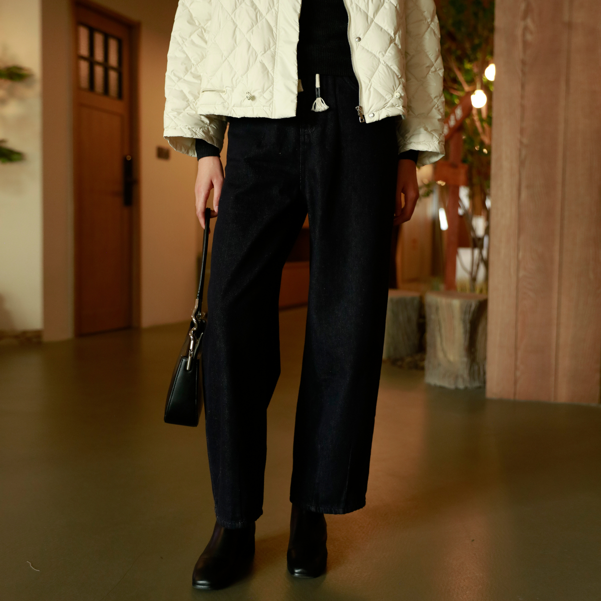 HD8301006 简约文艺抽绳设计宽松牛仔长裤 西町村屋哈伦裤 女冬新款