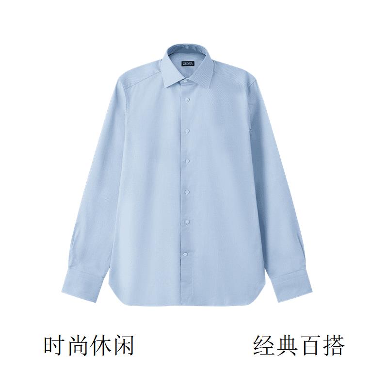 杰尼亚男士 Zegna 棉质细小格纹长袖 衬衫 9039休闲 9MS0JI 自营