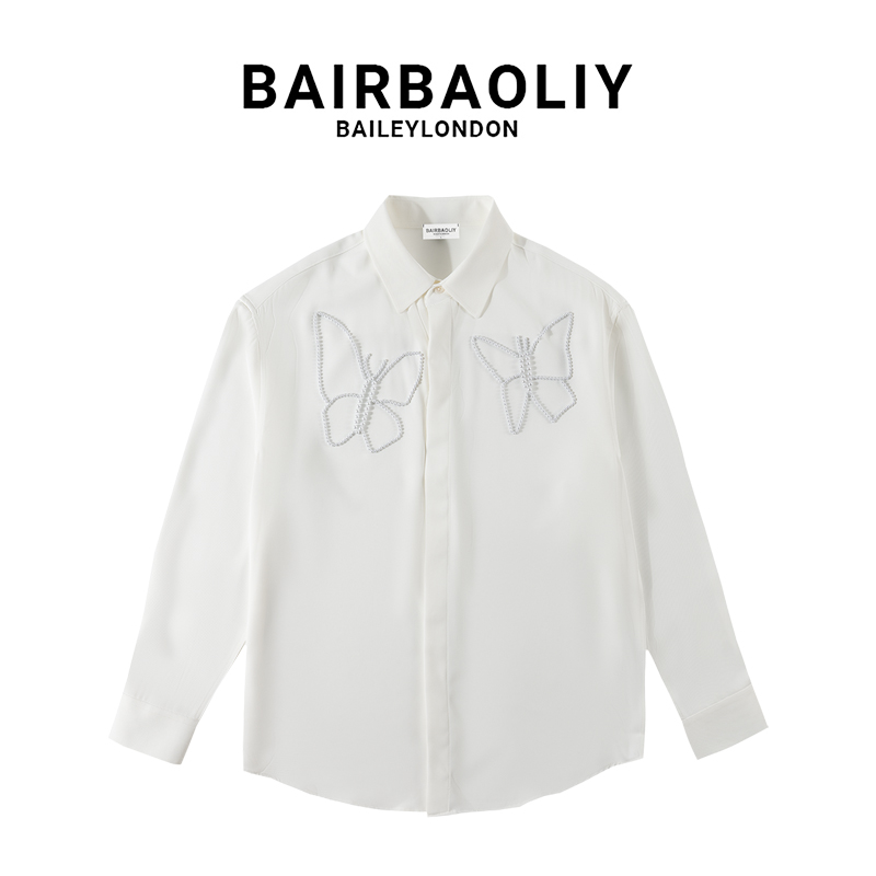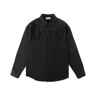 女2025秋宽松休闲百搭叠穿内搭衬衣 衬衫 法式 复古爱心刺绣白色长袖