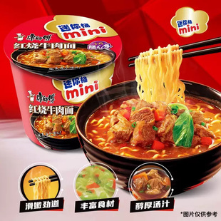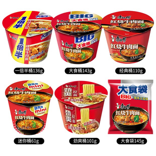 康师傅红烧牛肉面经典 劲爽一倍半迷你速食泡面方便面 桶大食桶袋装