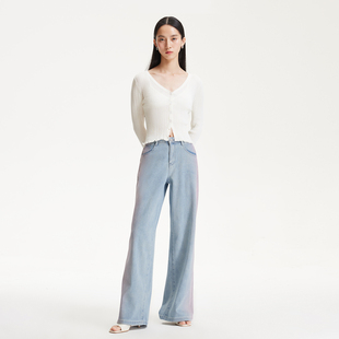 商场同款 新款 森马牛仔裤 潮流2025秋季 做旧长裤 女显瘦宽松弯刀裤