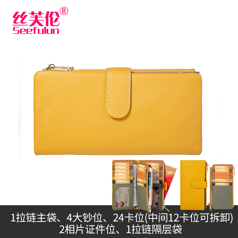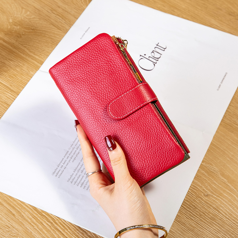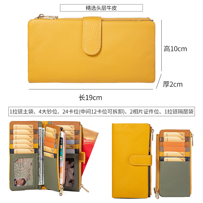 长款 真皮拉链钱包多功能大容量零钱包手机包耳机现金证件收纳包