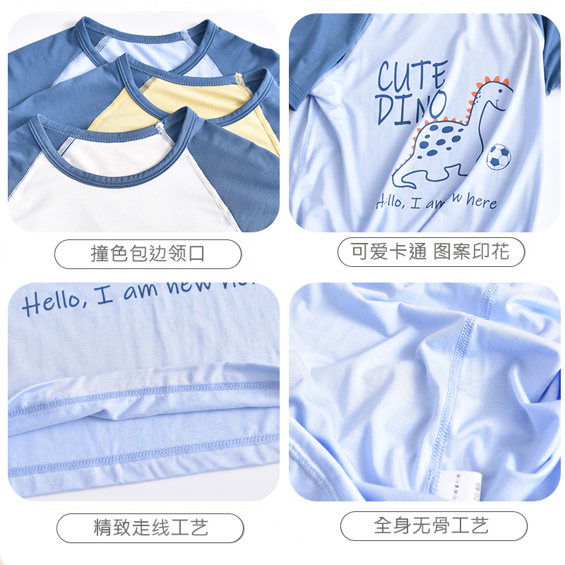 男童睡袍春夏长袖 儿童睡衣宝宝睡袋家居服男孩大童睡裙 莫代尔薄款