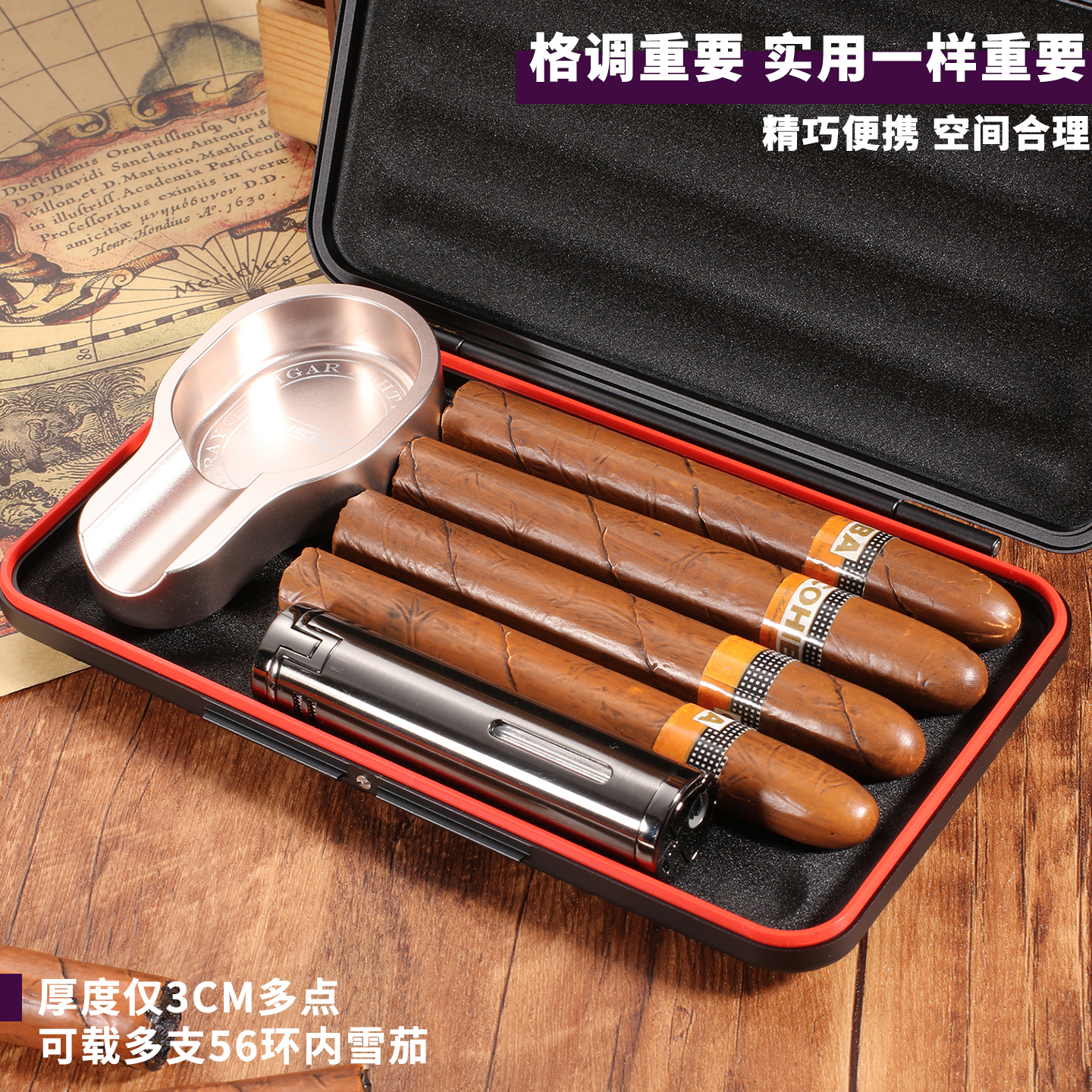 Crown.Ⅳ系列便携雪茄盒密封3CM超薄5支装 醒茄盒 户外旅行便携式