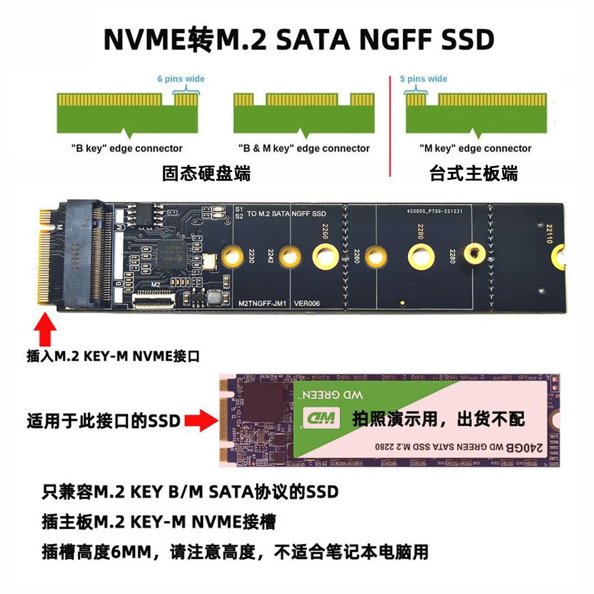 KEY SATA NFHK SSD转主板M NGFF NVME扩展卡JMB582 M.2