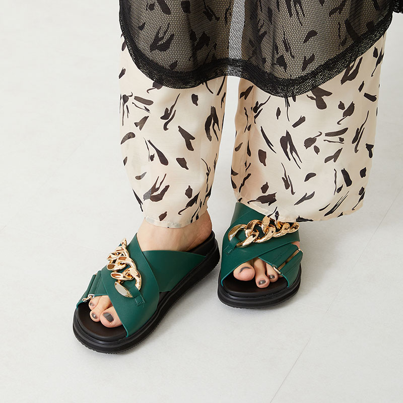 舒适拖鞋 厚底交叉带金属链外穿大码 女夏 TRaffic日系新款 ORiental