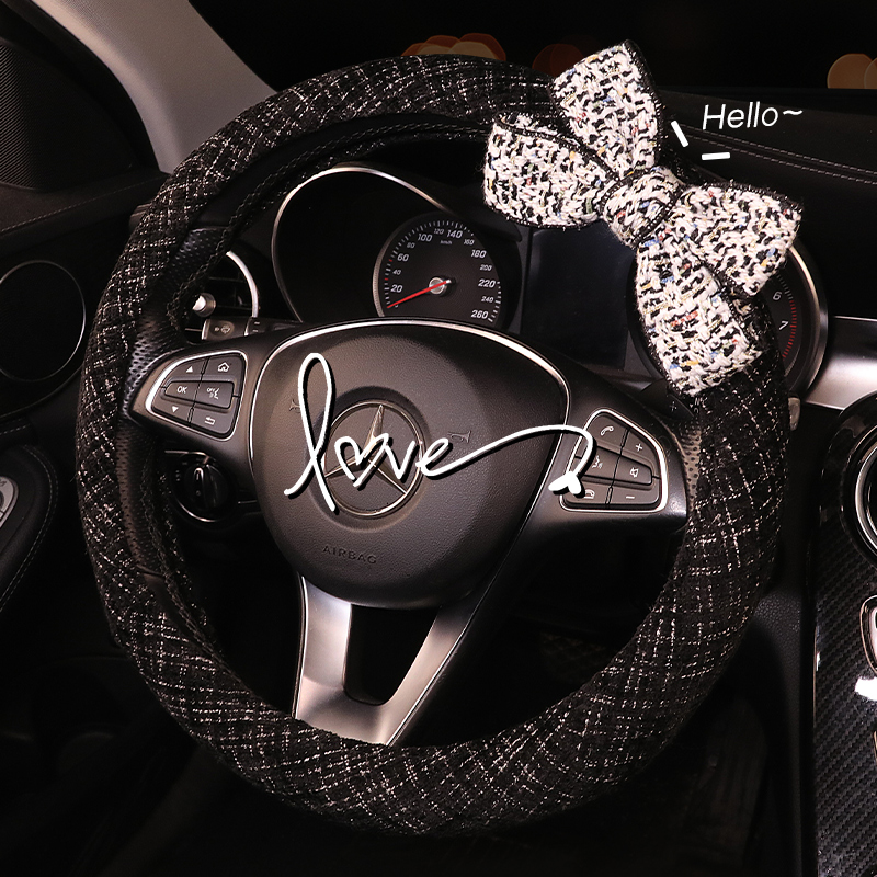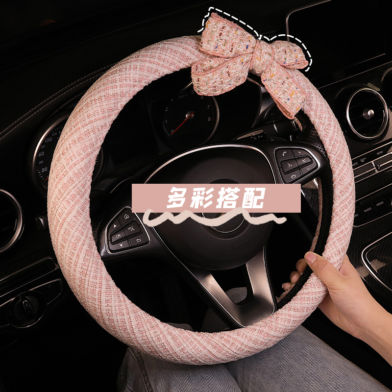 汽车方向盘套时尚 通用棉麻防滑吸汗女性把套 轻奢小香风蝴蝶结四季