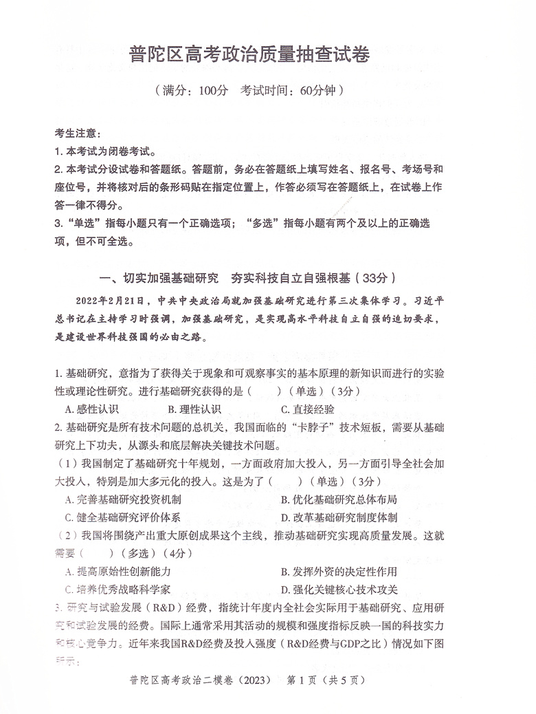2023上海高考二模卷政治上海市各区县高考考前质量抽查试卷精编 2023年版 仅试卷 高考二模卷政治 中西书局 走向成功