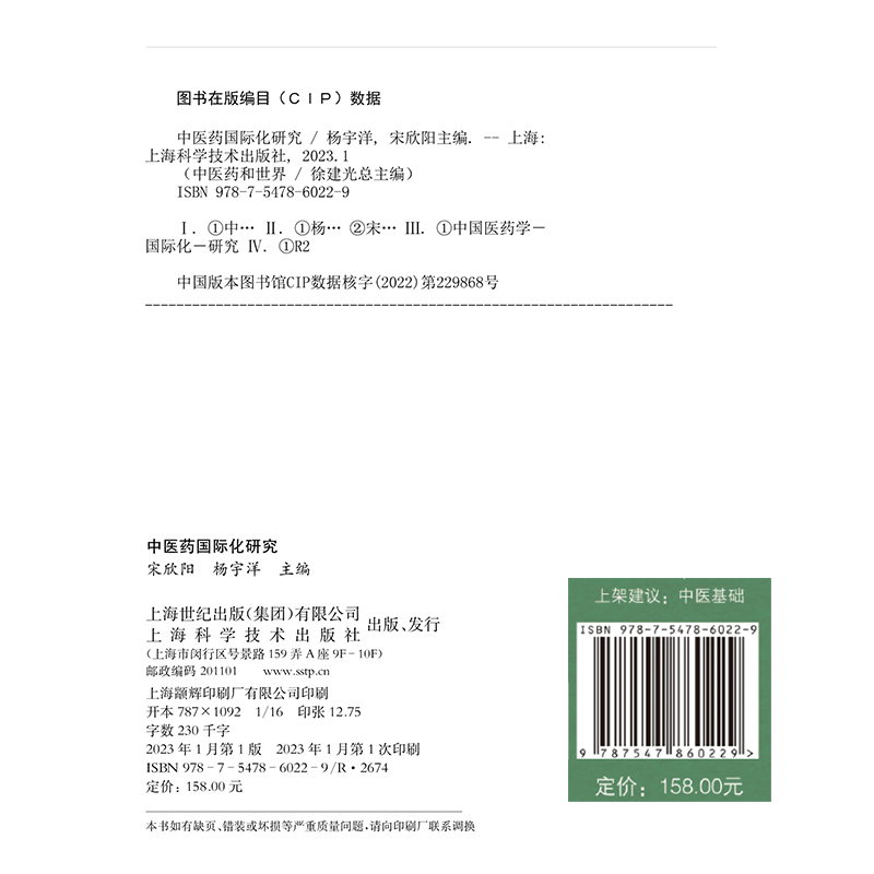 杨宇洋 中医药国际化研究 宋欣阳主编 上海科学技术出版 9787547860229 现货正版 社 中医药和世界