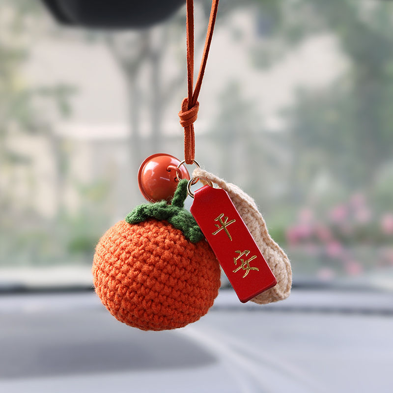 车载挂件好事发生汽车手工钩织柿子花生车内挂饰后视镜吊坠装 饰品