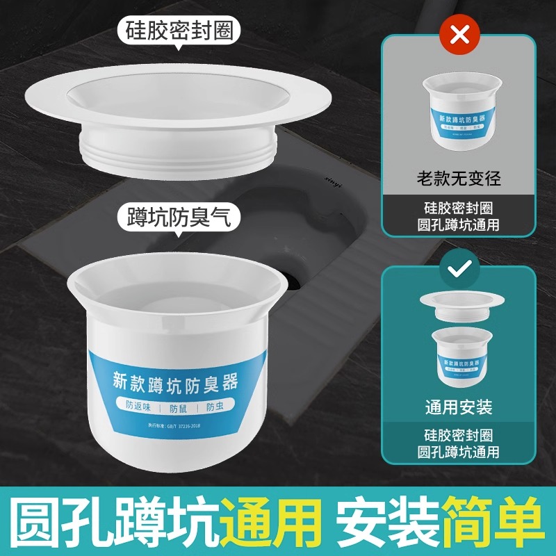 厕所防臭堵臭器蹲坑式 蹲厕堵塞卫生间蹲便器便池盖防返臭神器马桶