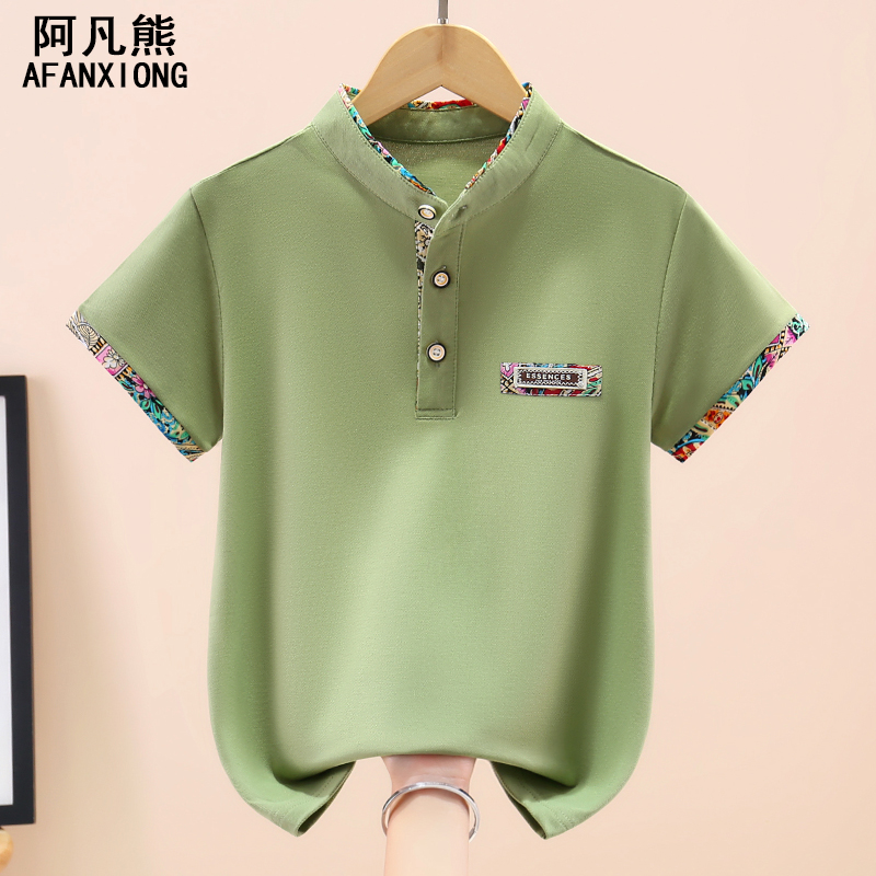 夏季 上衣儿童纯棉薄款 潮短袖 T恤半袖 衣服 2025新款 男童立领polo衫