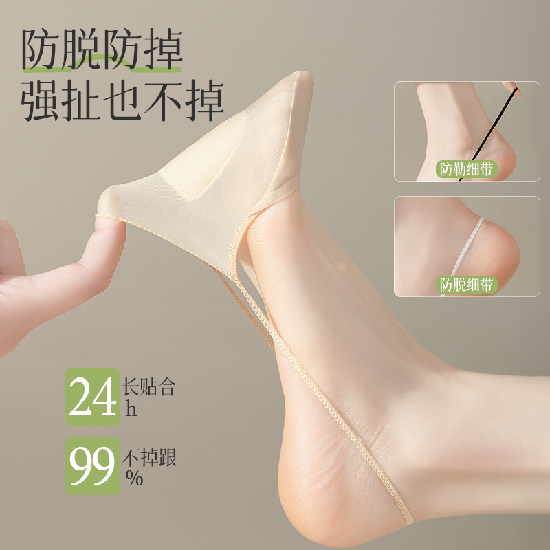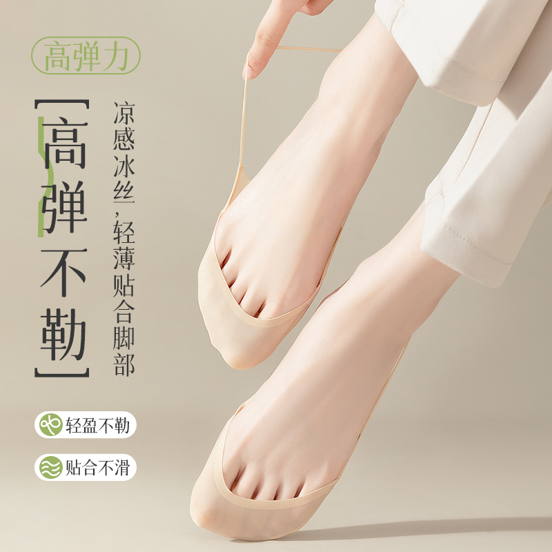 高跟鞋 袜子薄款 袜子 冰丝隐形袜棉制底防滑不掉跟浅口鞋 船袜女夏季
