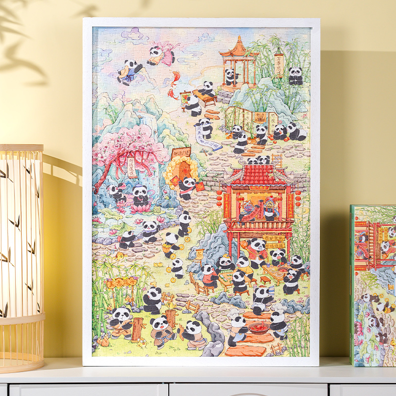 猫 高级感挂墙画国潮玩具裱框 天空之城1000片拼图巴适熊猫成人版