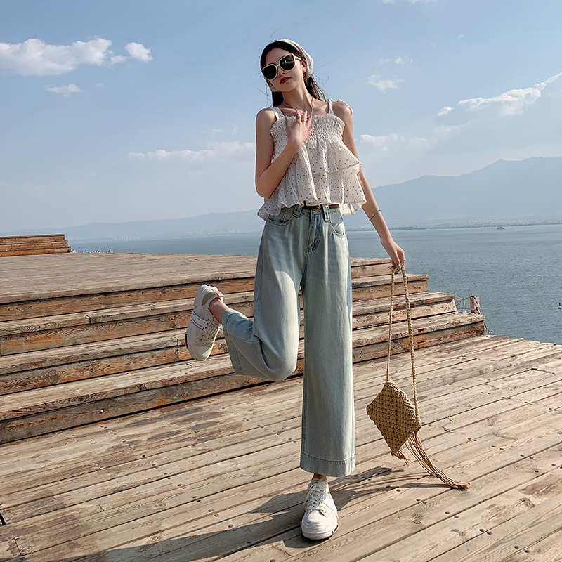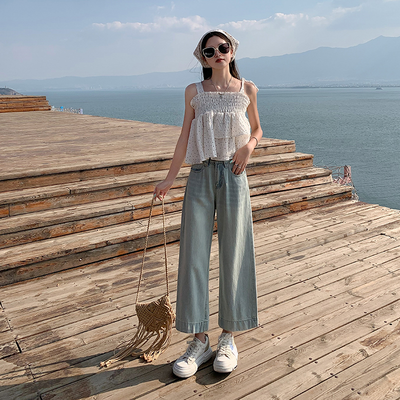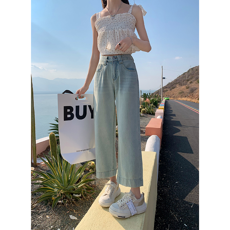 复古辣妹多巴胺八分小个子牛仔裤 天丝阔腿裤 垂感薄款 新款 女奶奶裤