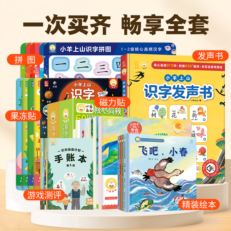 儿童3 小羊上山儿童汉语分级读物 8岁发声书汉字磁力贴识字拼图果冻贴小羊上山绘本幼儿园阅读绘本课外读物 小羊上山周边合集