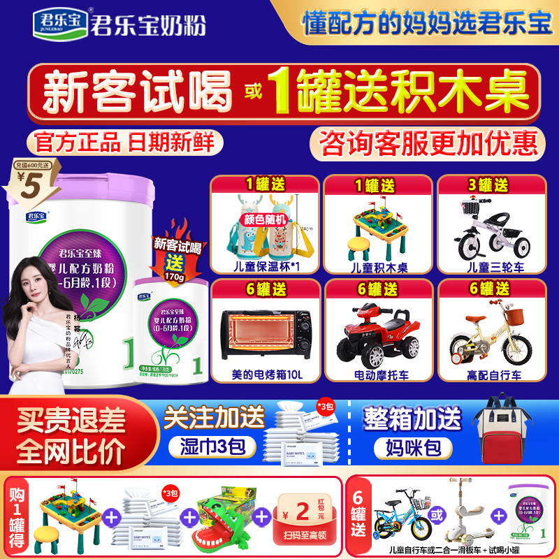 新客试喝君乐宝至臻奶粉1段0 6个月一段婴幼儿配方牛奶粉800g官方