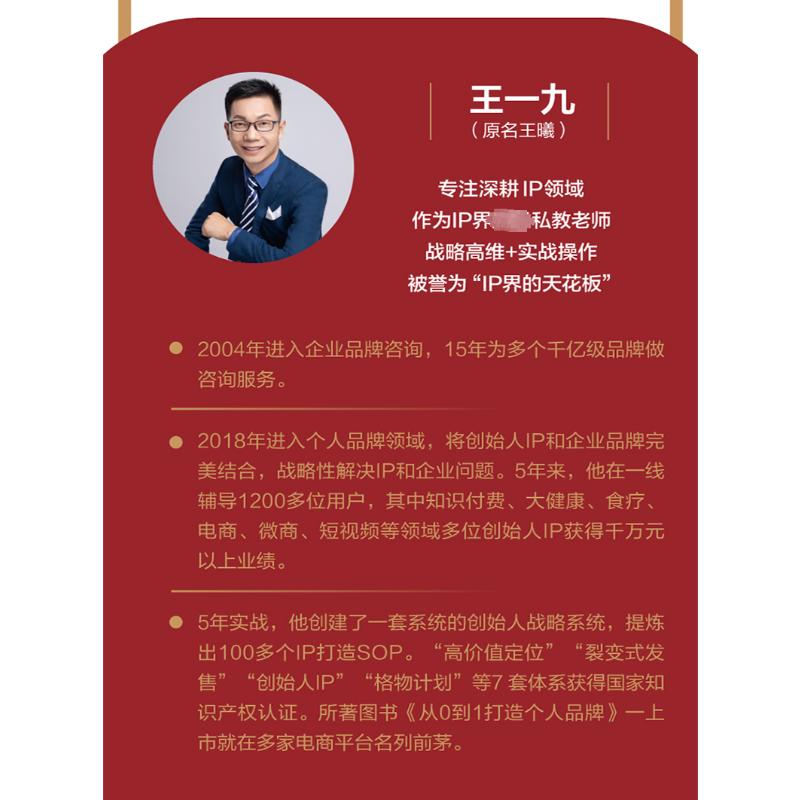 个人品牌全新升级战略 王一九 书籍 新华文轩 新华书店旗舰店文轩官网 正版 创始人IP打造7字要诀 社 电子工业出版