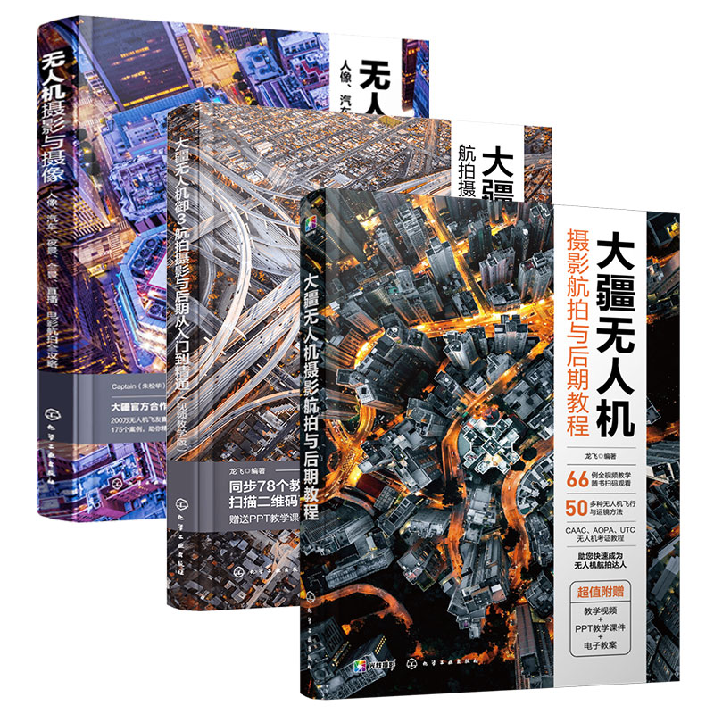 无人机摄影与摄像 大疆无人机摄影航拍与后期教程 人像汽车夜景全景直播电影航拍书 大疆无人机御3航拍摄影与后期从入门到精通 3册