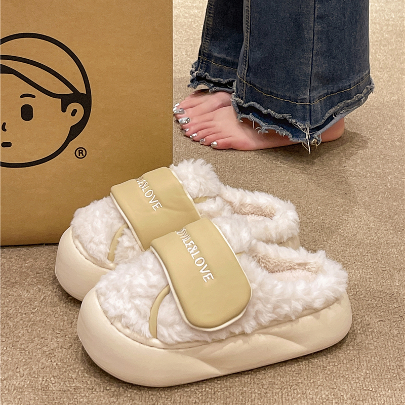 毛绒加绒加厚毛毛拖鞋 室内居家用防滑保暖月子鞋 男冬 女冬季 棉拖鞋