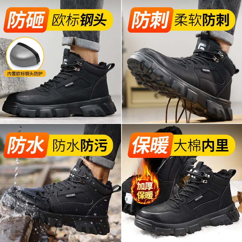 男士 劳保鞋 加绒2025新款 冬季 防砸防刺穿工作安全绝缘工地轻便 男款