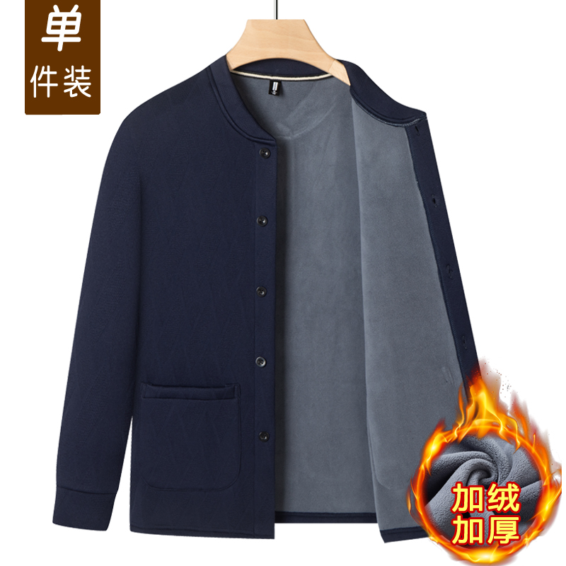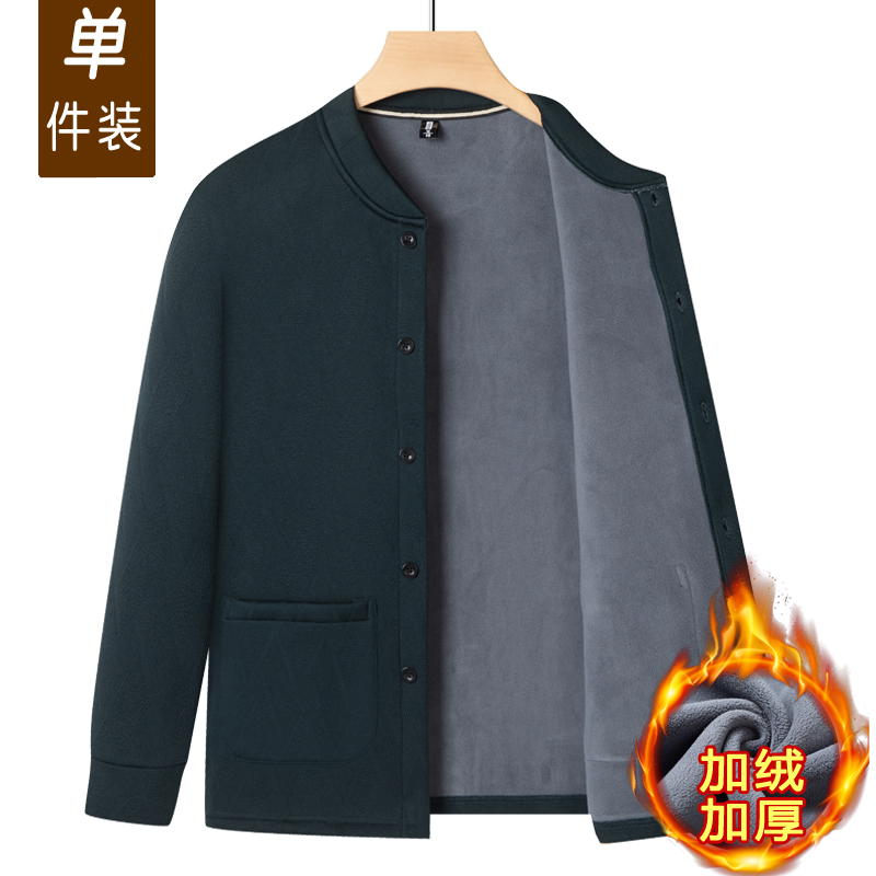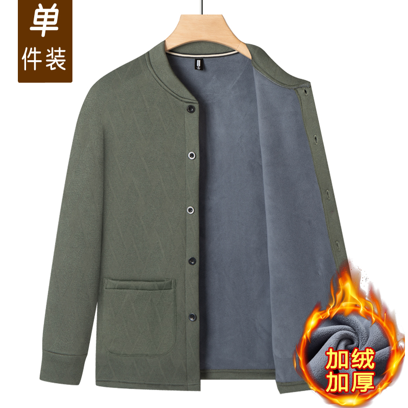 外套爷爷卫衣爸爸装 开衫 保暖内衣中老年男加绒加厚德绒上装 秋冬季