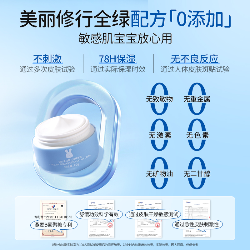 舒比兔儿童面霜山茶花植萃倍润舒缓干敏红学生润肤霜宝宝霜保湿 乳