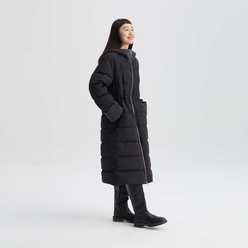 波司登冬季 过膝连帽外套保暖加厚羽绒服 简约优雅温柔感长款