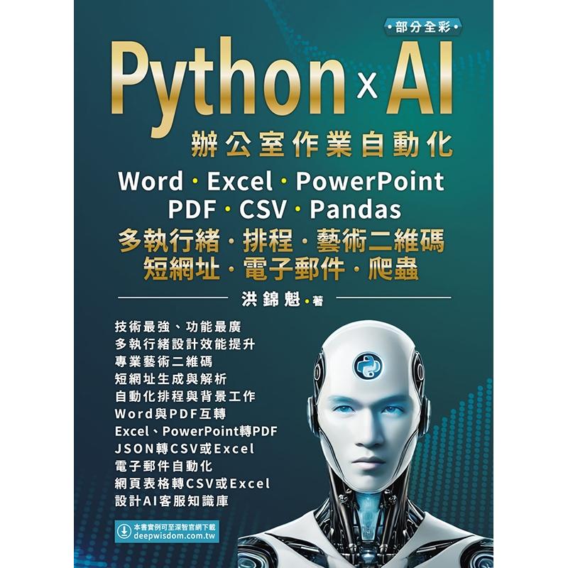 AI办公室作业自动化:Word 洪锦魁 深智数位 Pandas Python 多执行绪 PowerPoint Excel 艺术二维码 预售 PDF 排程 CSV
