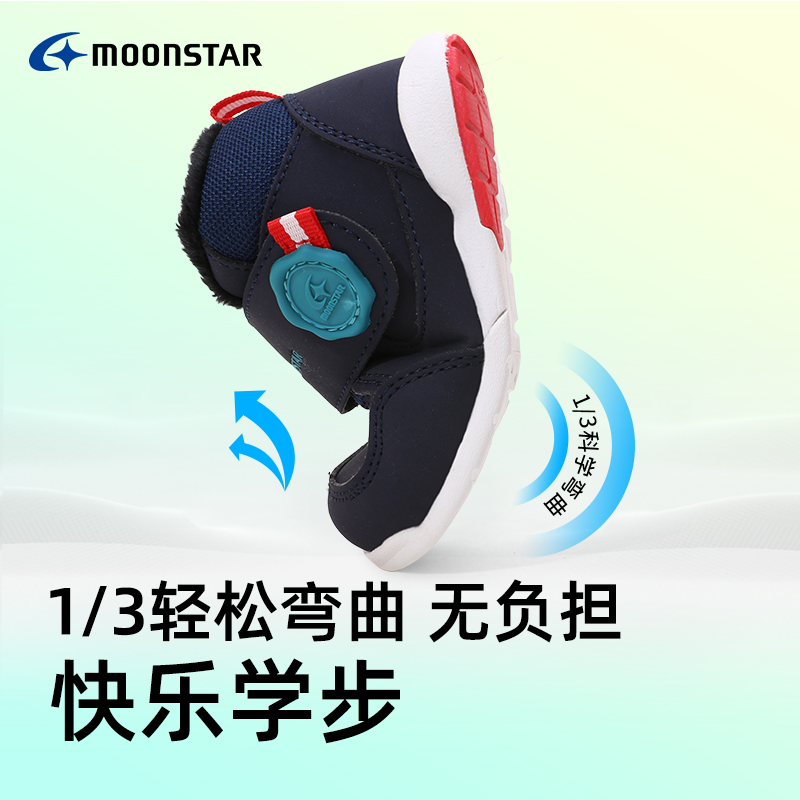 2岁宝宝机能保暖鞋 MOONSTAR月星冬0 加绒学步二棉鞋 双11预售
