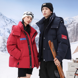 火炉骆驼羽绒服冬季 防泼水运动外套面包服 鸭绒男女加厚保暖短款