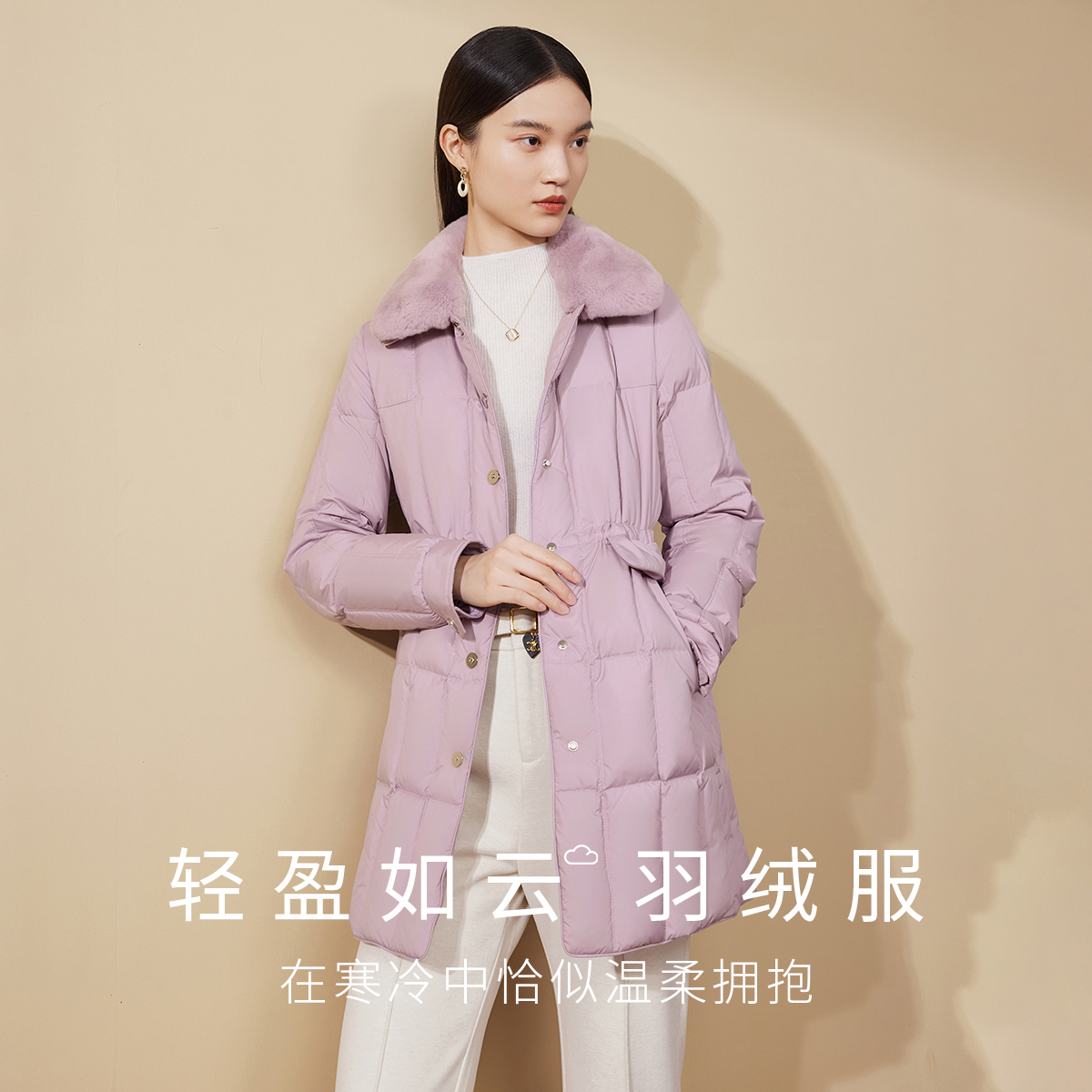 FINITY菲妮迪90白鹅绒羽绒服女2024冬新款 外套 收腰保暖毛领中长款