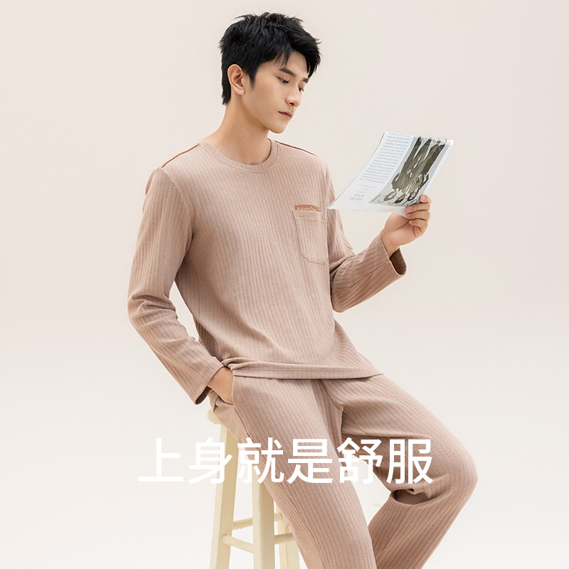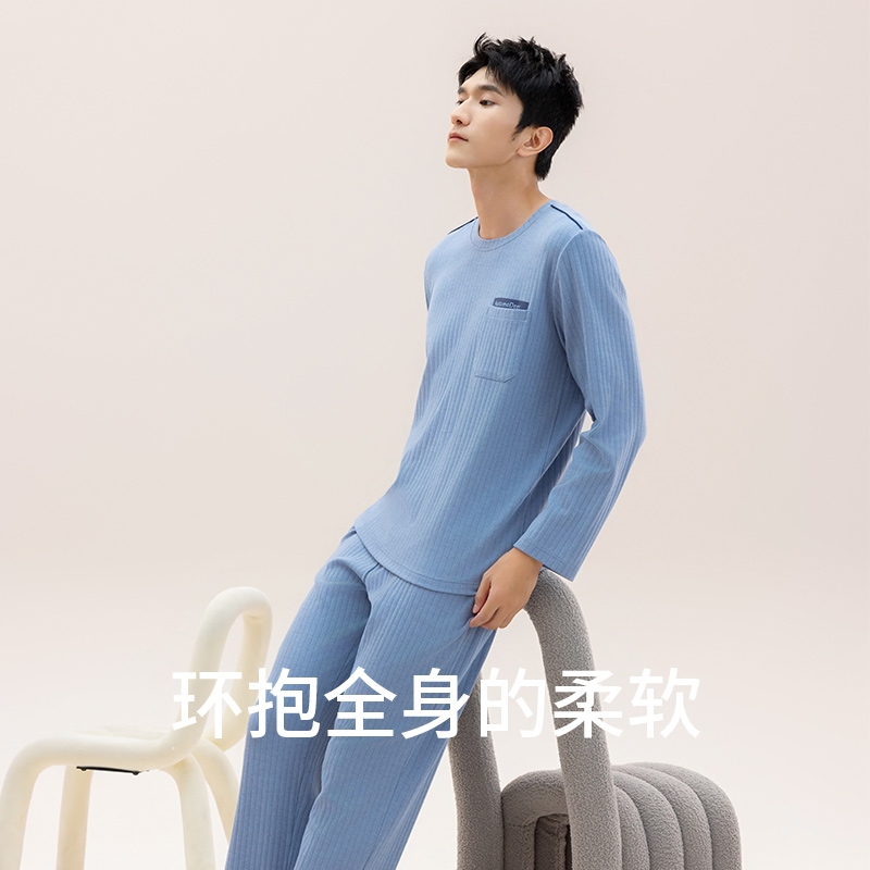 商场同款 长裤 秋鹿纯棉男士 圆领长袖 家居服男 睡衣秋冬2025新款