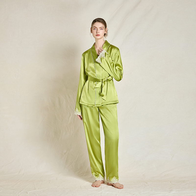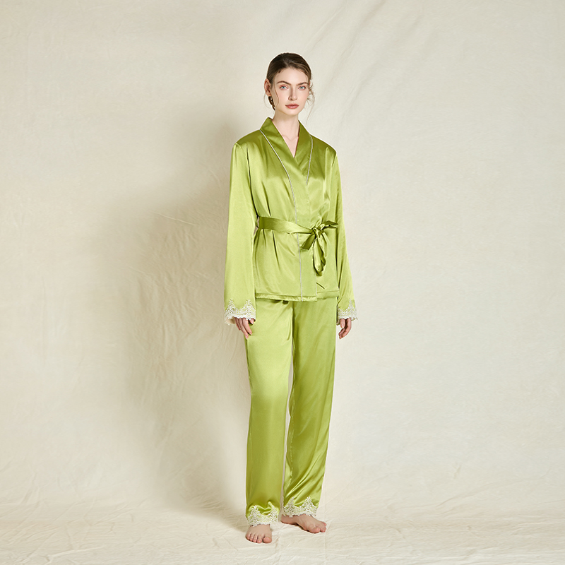 NoirTease2025秋冬加绒加厚睡衣女丝质长袖 系带睡袍家居服两件套