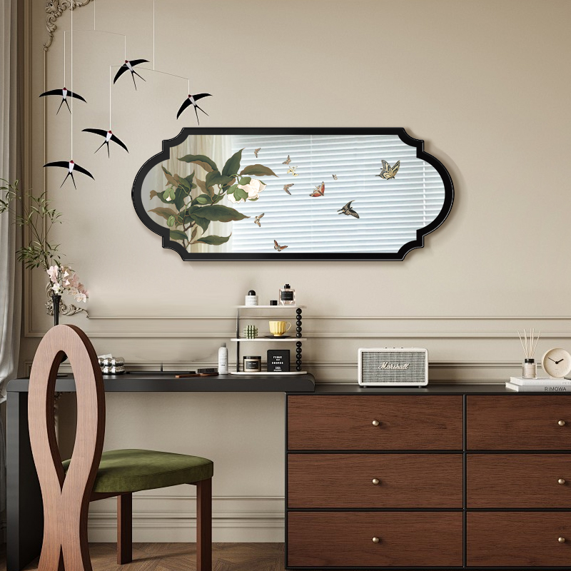 中古风客厅镜子装 复古高级感餐厅挂画 饰画创意小众边柜镜面画法式