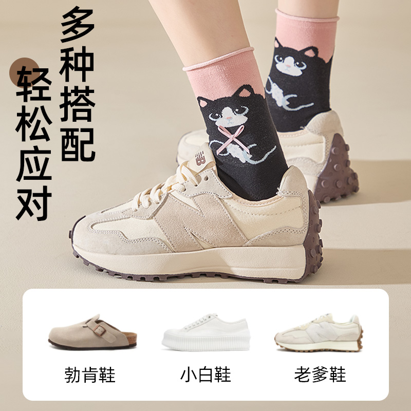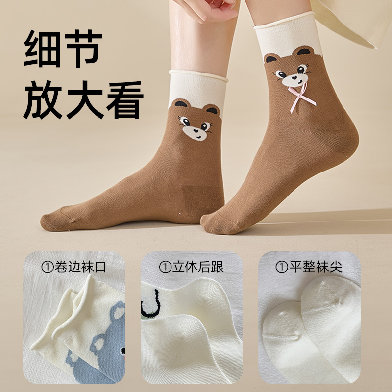 袜子女中筒袜纯棉春秋咖色美拉德堆堆袜秋冬搭配小皮鞋 长袜 勃肯鞋