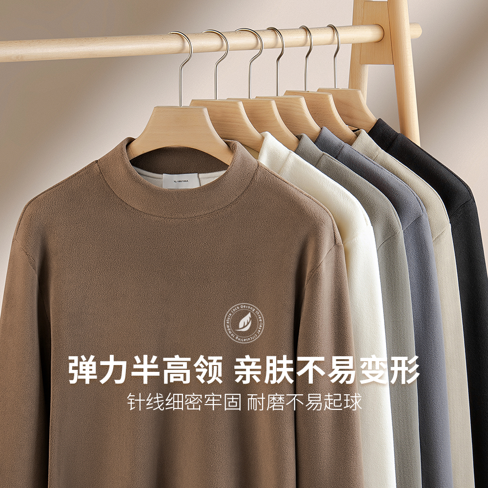 450G重磅奥粒绒加厚半高领打底衫 T恤 男2025秋冬加绒保暖发热长袖