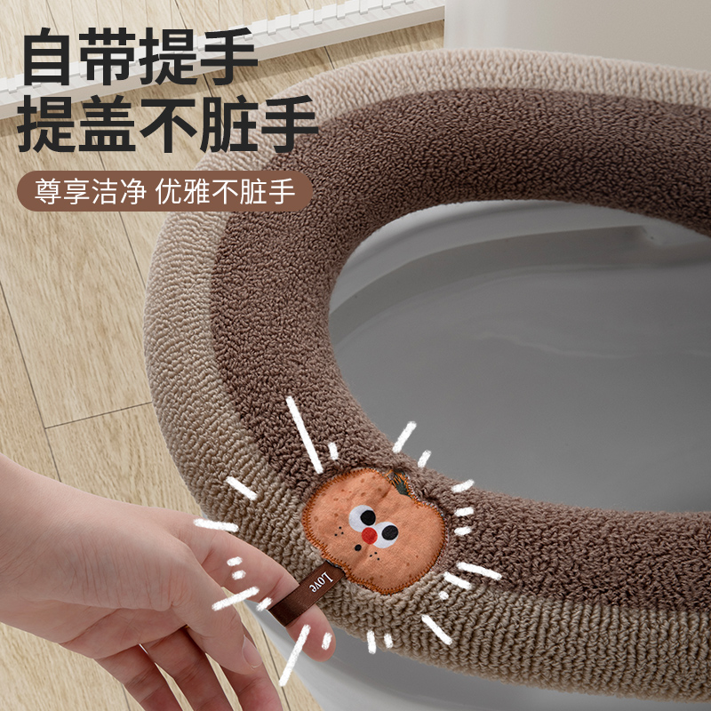 马桶坐垫秋冬季 加厚加绒带提手家用针织加大可水洗坐便垫圈 新款