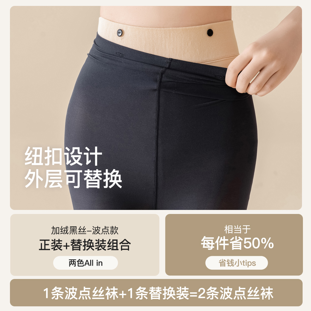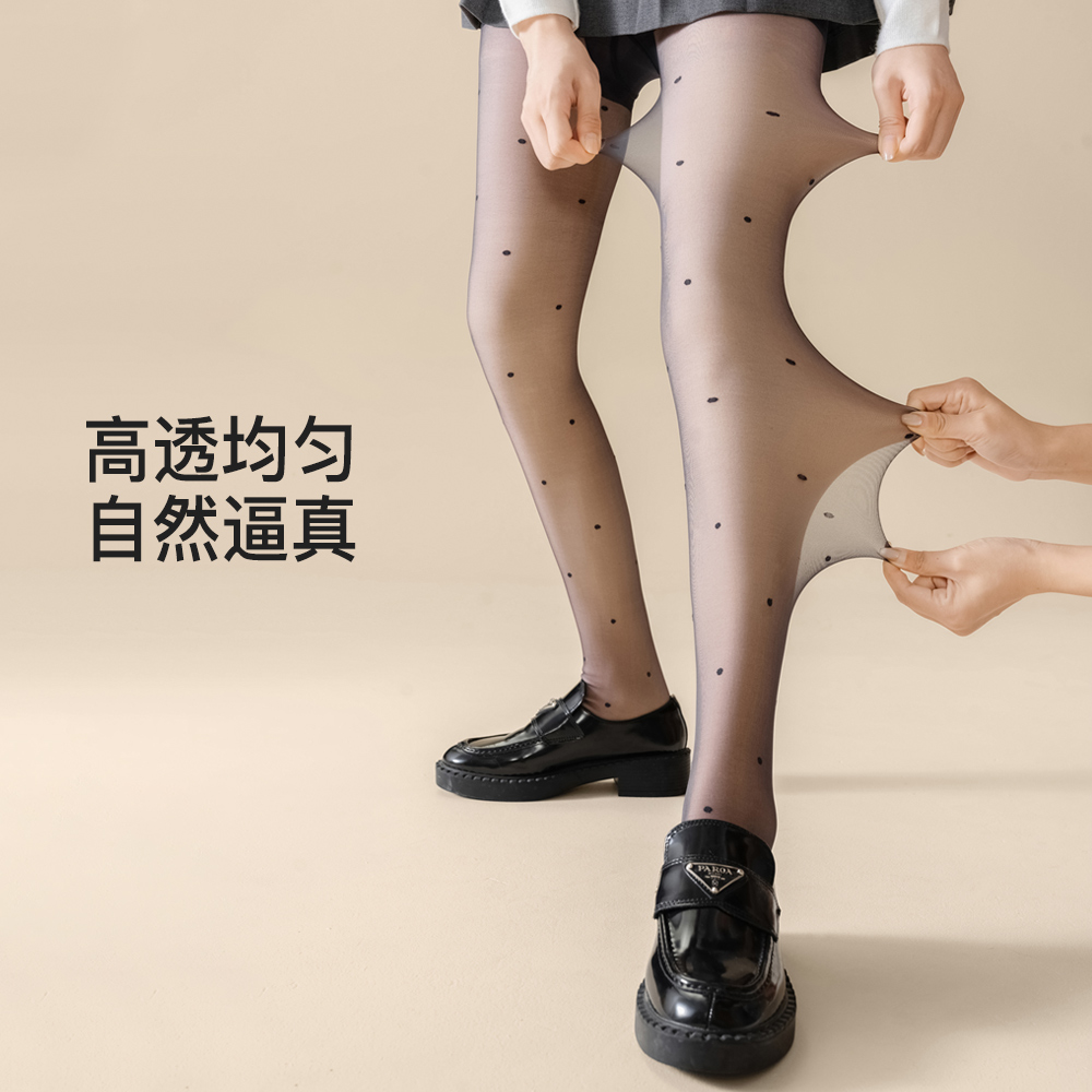 Enjoy 袜 it加绒波点黑丝光腿神器春秋薄绒丝袜女秋冬黑透肤连裤