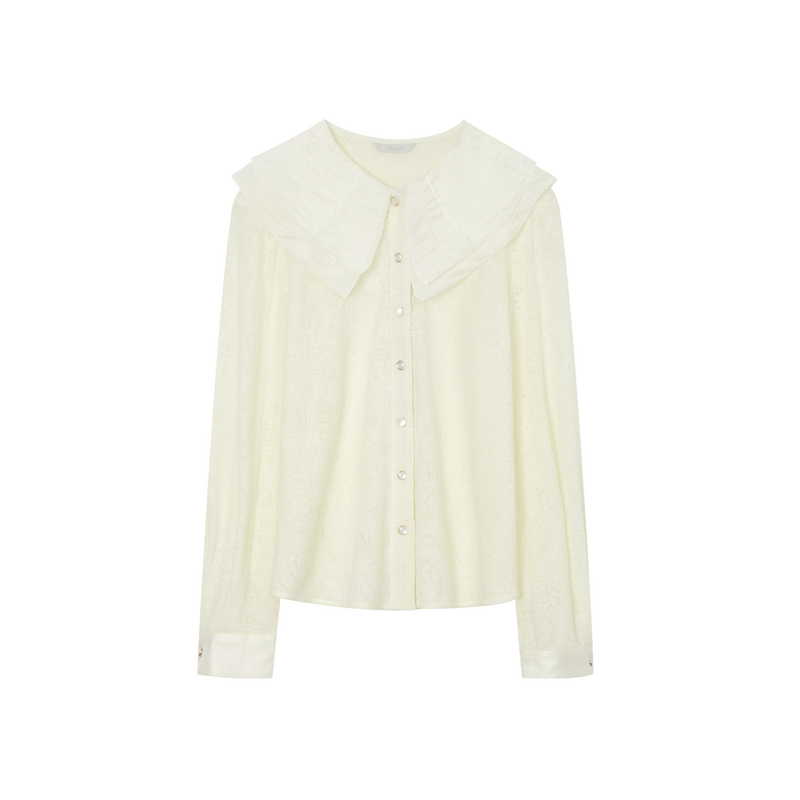 柔软亲肤舒适显瘦女 秋冬季 飘蕾绵羊毛长袖 加厚翻领百搭好看衬衫