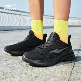 软底跑鞋 凌跃2鸿星尔克男鞋 减震运动鞋 黑色公务鞋 革面防水跑步鞋