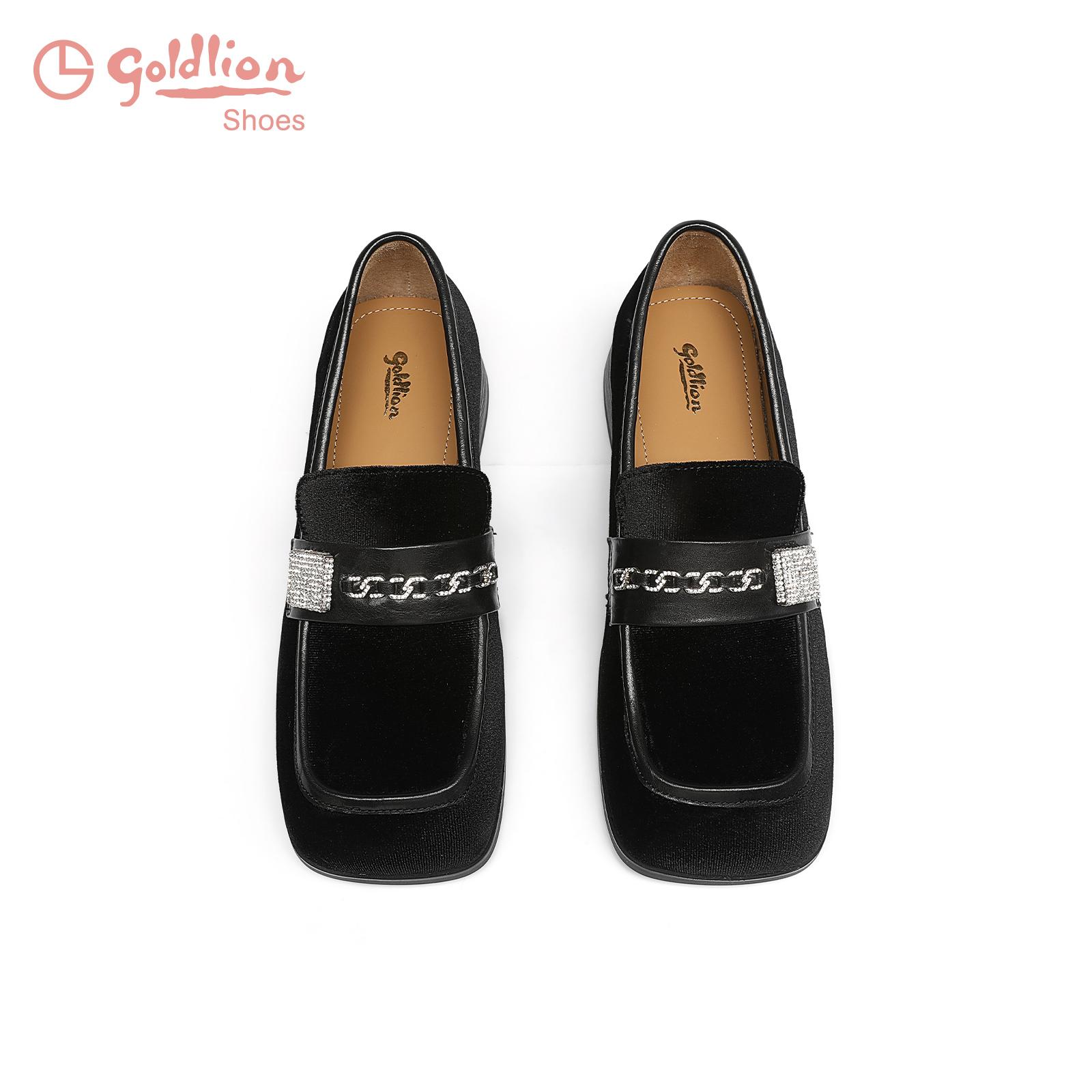 方头深口百搭一脚蹬黑色简约乐福鞋 时尚 女 2024秋冬新款 金利来女鞋