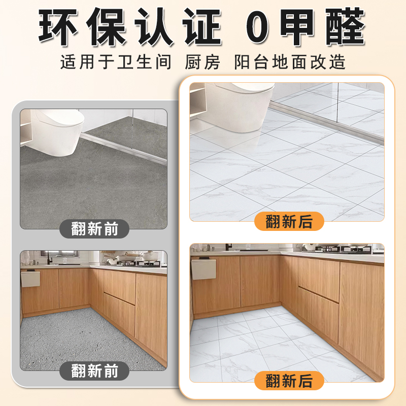 pvc自粘地板贴仿瓷砖加厚耐磨防水地板贴地板革自铺地面翻新改造