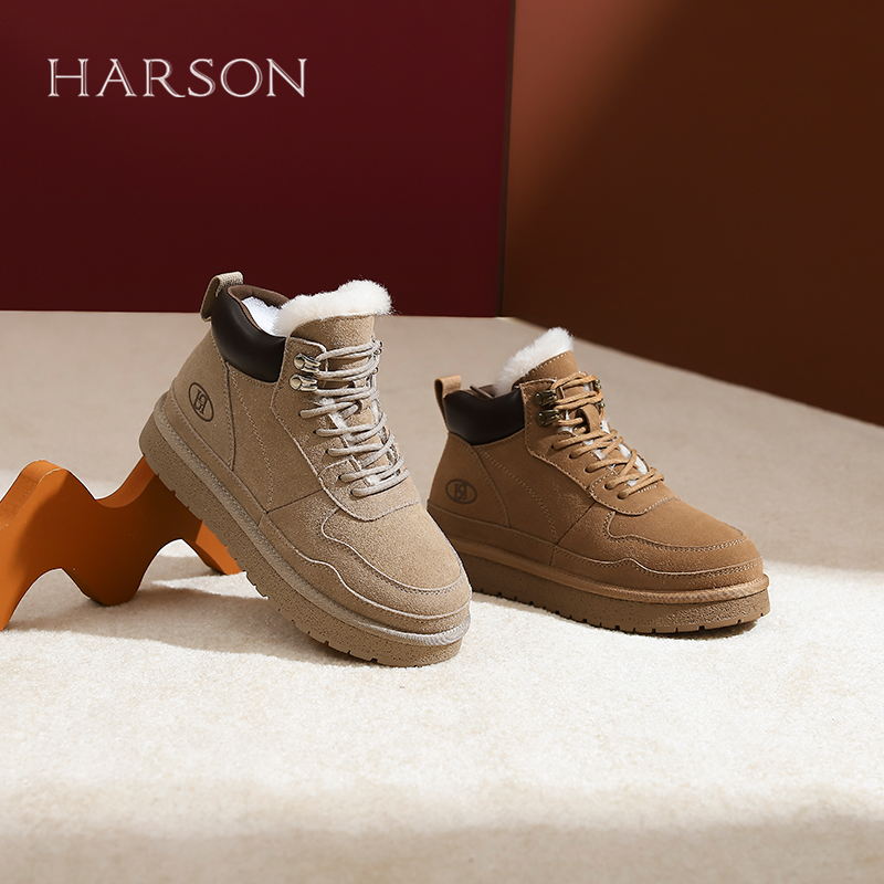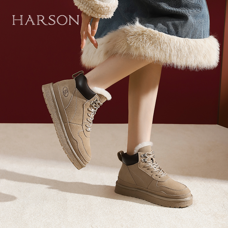 哈森雪地靴女冬新款 HWA240141 短筒大黄靴加绒高帮休闲运动鞋