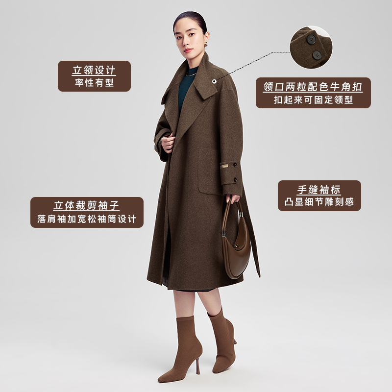 RUISHI芮时 重磅驼绒桑蚕丝羊毛慵懒两穿领毛呢大衣女秋冬外套女