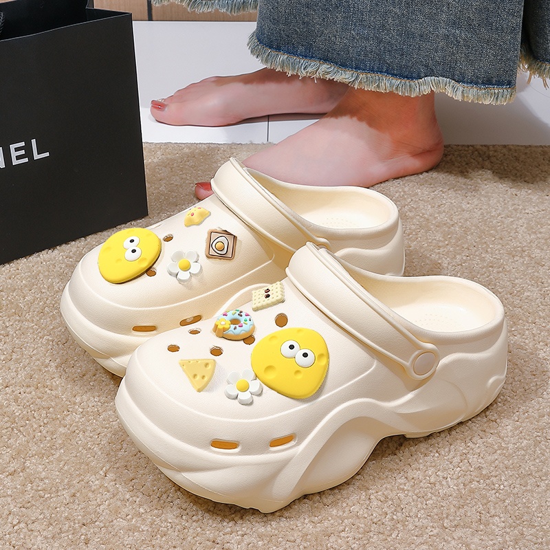 户外防滑沙滩鞋 朴西奶酪情侣厚底踩屎感洞洞鞋 包头拖鞋 夏季 男 女款
