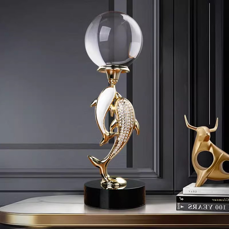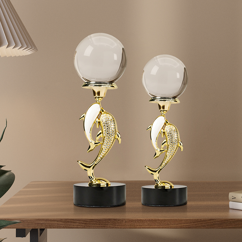 发光水晶球桌面摆件海豚水母玻璃球小夜灯装 饰品生送儿童生日礼物