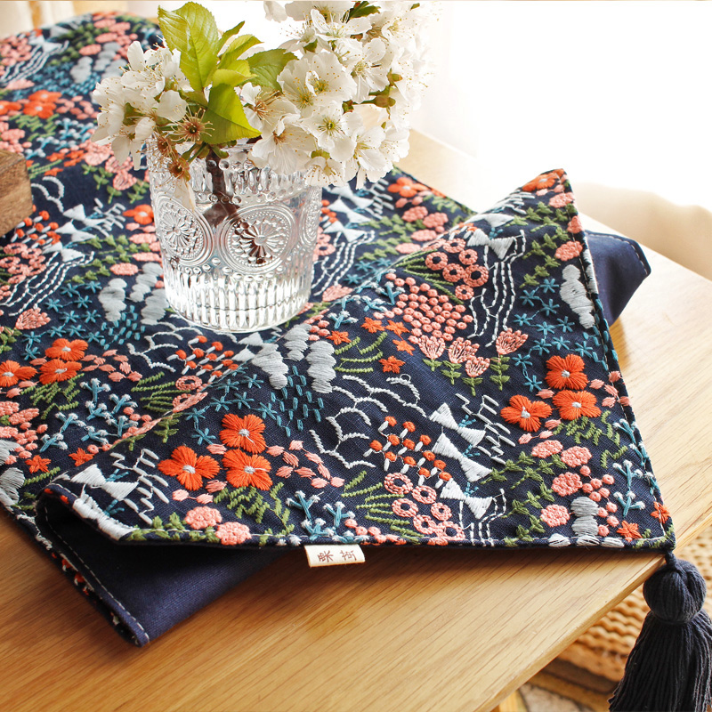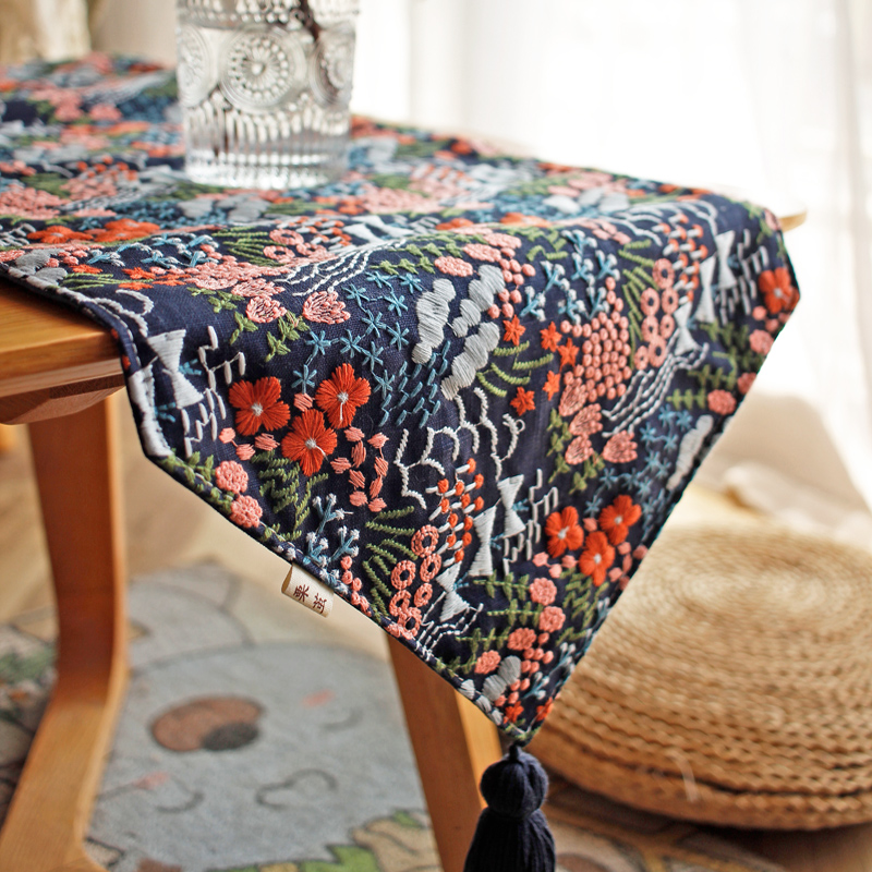 日式 柜盖布 轻奢刺绣桌旗长方形电视柜餐边柜桌垫布茶几餐桌斗柜鞋