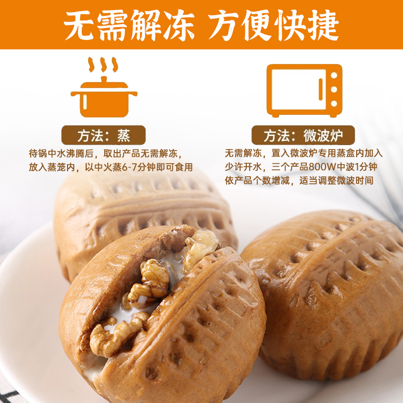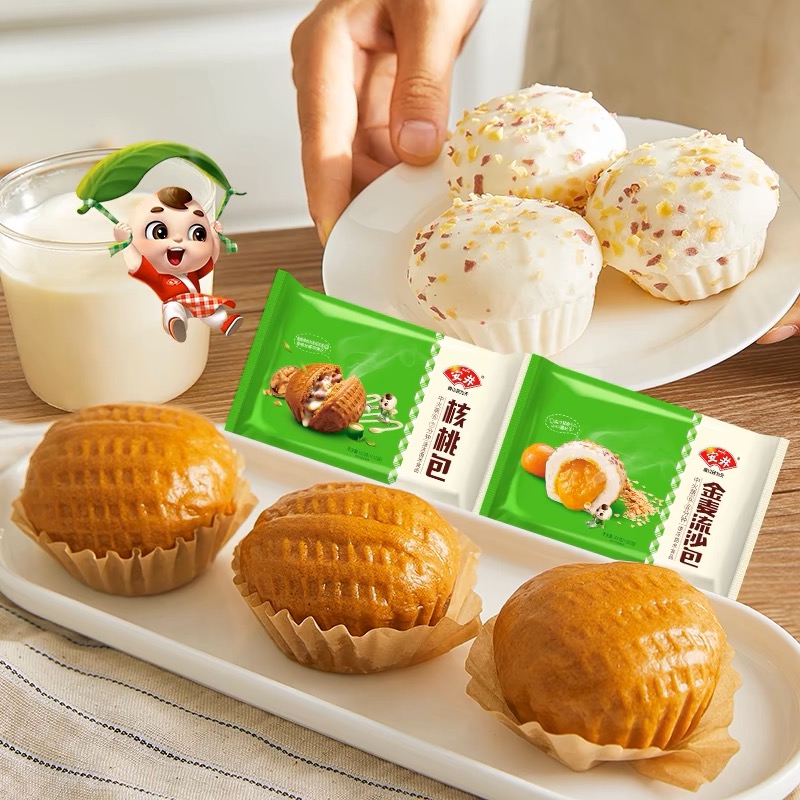 安井核桃包金麦流沙包家庭早餐半成品核桃早餐包速冻包子加热即食